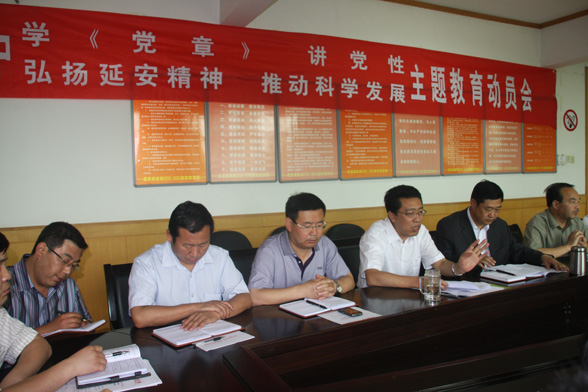 6月17日上午,校党委在三楼议室召开了“学党章、讲党性,弘扬延安精神,推动科学发展”主题教育活动动员会。校领导、各支部书记、委员及全体行政会议人员参加了会议。会议由校长齐军主持。