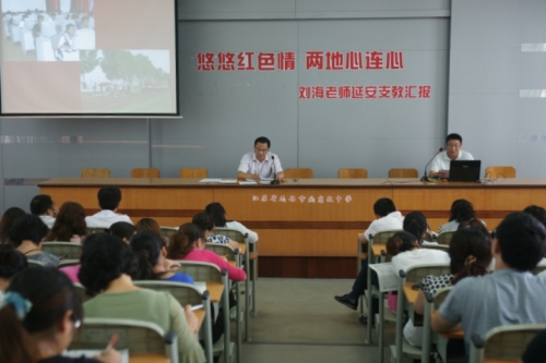 2010至2011学年度,市北高中教师刘海奔赴延安第一中学进行了为期一年的支教工作。9月13日,刘海老师以自己的真情实感为市北高中全体教师作了题为《悠悠红色情、两地心连心》的总结报告。