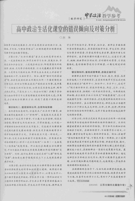 中政参:高中政治生活化课堂的错误倾向及对策分析
