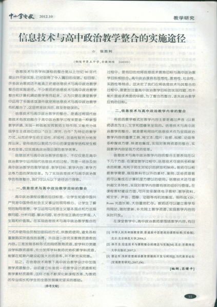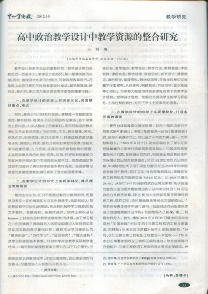 中小学电教:高中政治教学设计中教学资源的整合研究