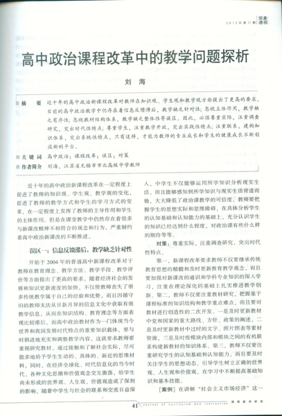 【站长简介】刘海,教育硕士,江苏省“333高层次人才工程”培养对象、江苏省“刘海网络名师工作室”领衔教师、延安市优秀教师,无锡市教学能手、无锡市首届“勤远教师奖”获得者、校德育处副主任、校政治教研组组长、校学术委员会秘书长。曾参与或主持过《高中思想政治研究性课堂教学模式的创设与运用》等多项省市级课题研究工作,撰写的《浅谈乡土材料在经济常识教学中的运用》等90多篇文章发表于省级教育期刊或全国中文核心期刊。120多篇论文、教案、试题、高考分析等文章发表于《中学生时事政治报》等教辅类专业报刊。制作以个人原创资源为主的思想者工作室网站( http://www.teacher001.net)……[详细内容]