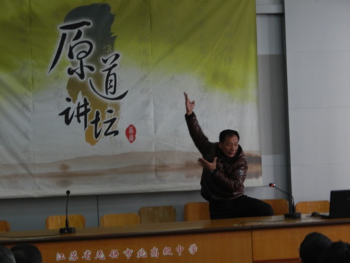 12月24日,由我校学术委员会组织的“原道讲坛”系列活动第五讲在校报告厅举行。我校全体教职员工听取了体育组骨干教师纪夕新老师作了题为《创建书道拳》的主题讲座。