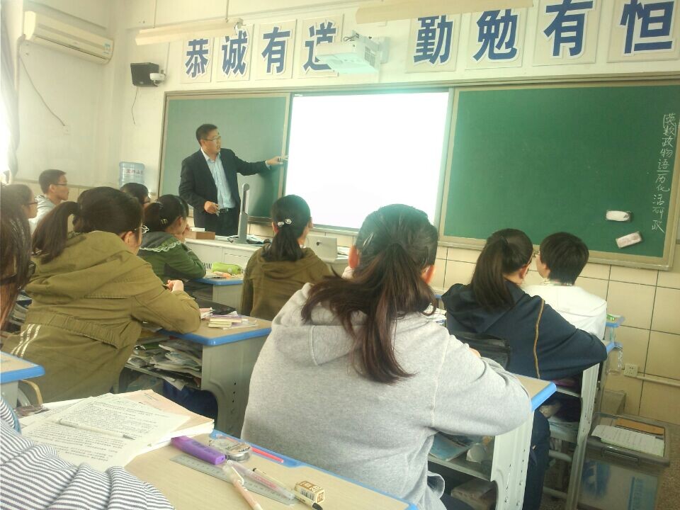 政治组刘海老师开设了《唯物辩证法复习》的公开课,课堂以中美双方共同构建的以相互尊重、互利共赢的合作伙伴关系为核心特征的“新型大国关系”为切入点,分别从唯物辩证法的联系观、发展观、矛盾观等不同角度系统分析了中美“新型大国关系”的正确性、重要性,充分利用讲授法、合作探究法等课堂教学形式,把基本原理与事实材料有机结合,较好地达成了课堂教学三维目标。