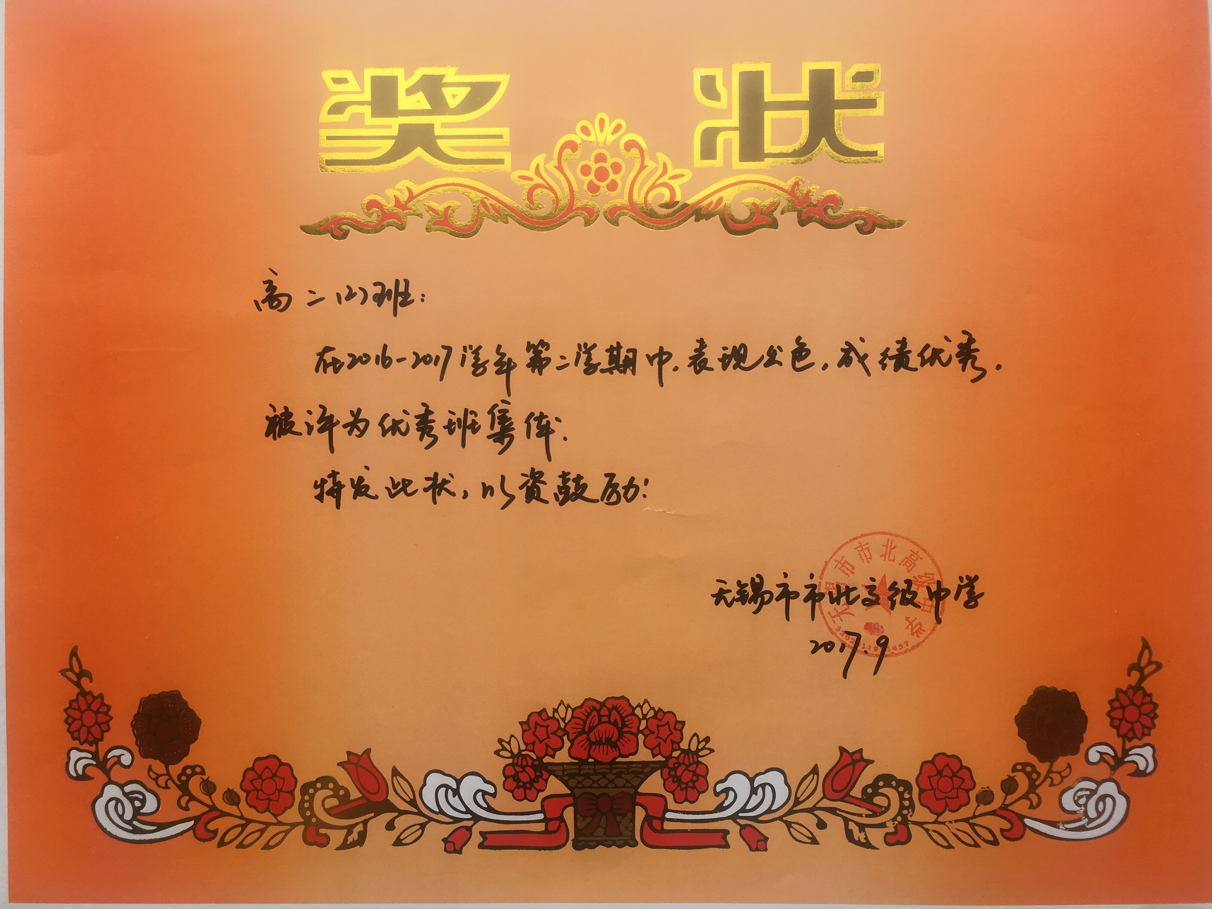 高二2班第二学期获评校优秀班集体
