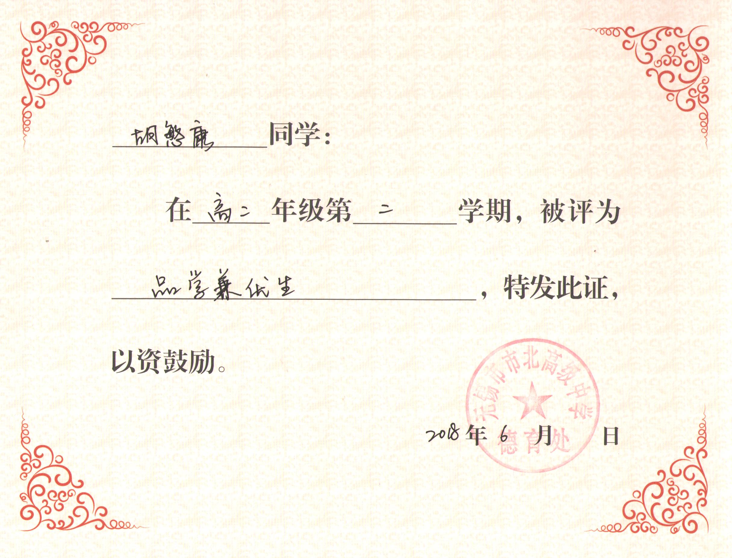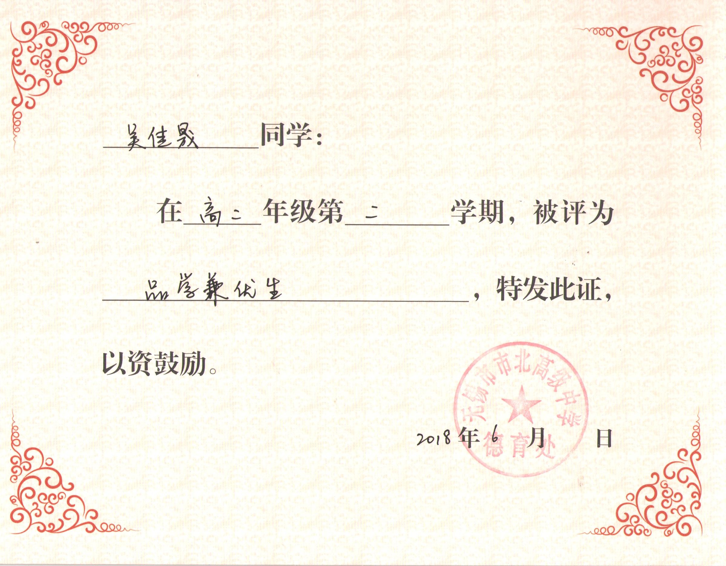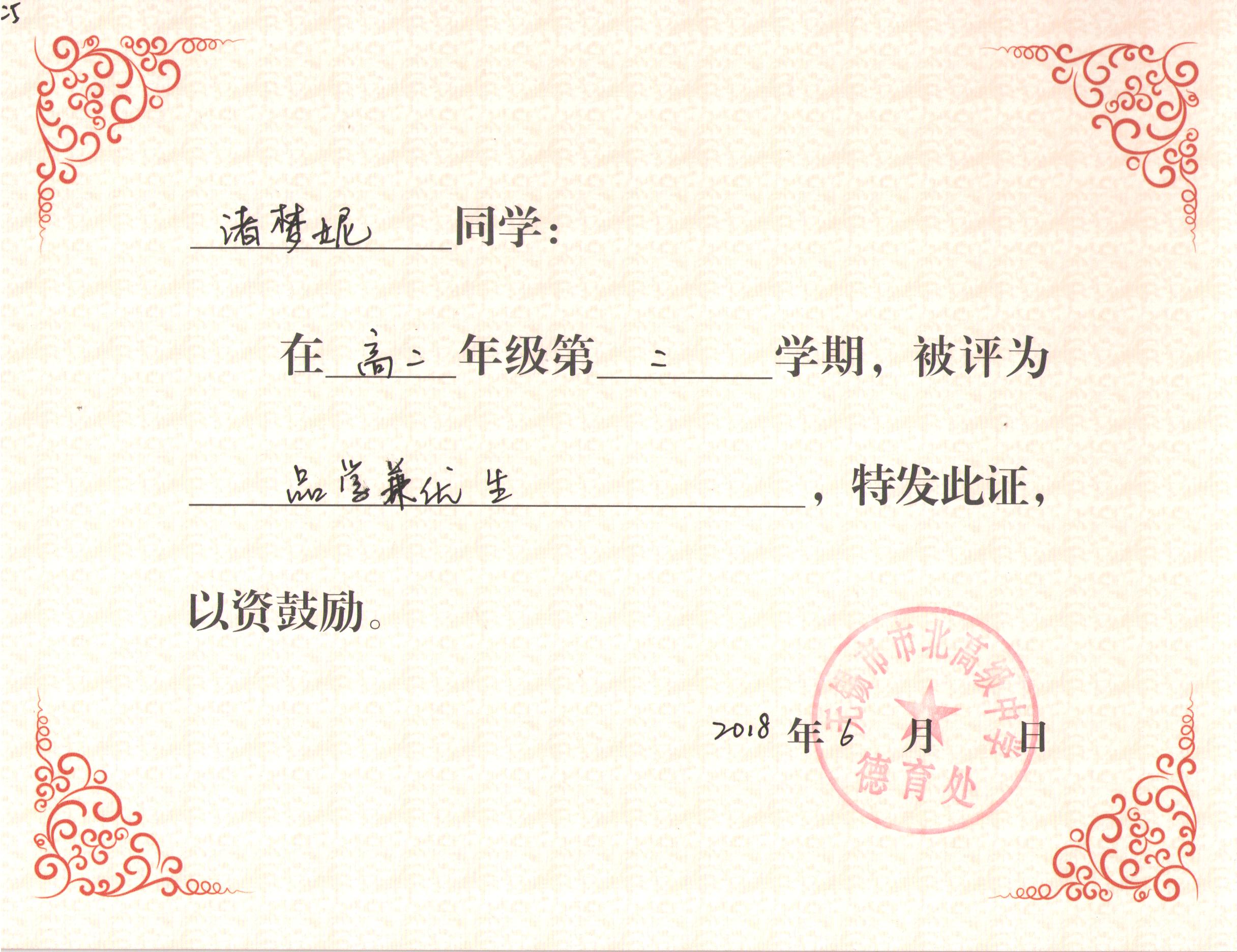 高二5班第二学期各类表彰:品学兼优生201806