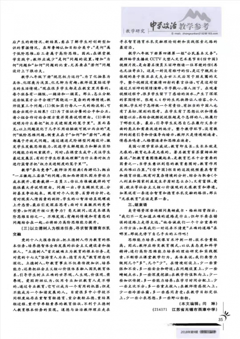 【站长简介】刘海,教育硕士,江苏省“333高层次人才工程”培养对象、江苏省“刘海网络名师工作室”领衔教师、延安市优秀教师,无锡市教学能手、无锡市首届“勤远教师奖”获得者、校德育处副主任、校政治教研组组长、校学术委员会秘书长。曾参与或主持过《高中思想政治研究性课堂教学模式的创设与运用》等多项省市级课题研究工作,撰写的《浅谈乡土材料在经济常识教学中的运用》等90多篇文章发表于省级教育期刊或全国中文核心期刊。120多篇论文、教案、试题、高考分析等文章发表于《中学生时事政治报》等教辅类专业报刊。制作以个人原创资源为主的思想者工作室网站( http://www.teacher001.net)……[详细内容]
