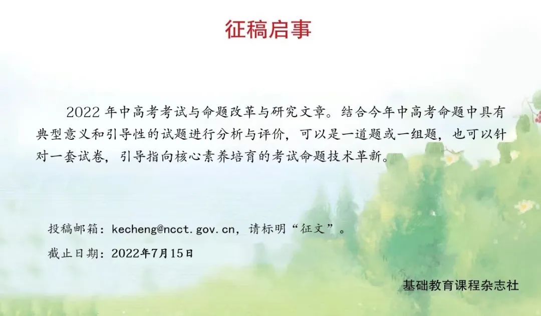 《中国考试》2022 年中高考考试与命题改革与研究文章(截稿20220715)
