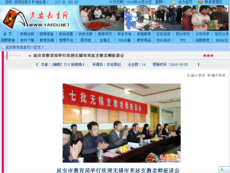 10.25延安教育网:延安市教育局举行欢迎无锡市来延支教老师座谈会