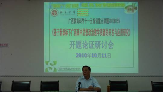 2010年10月11日,《基于新课标下广西高中思想政治教学资源的开发与应用研究》课题开题论证在昭平中学举行。