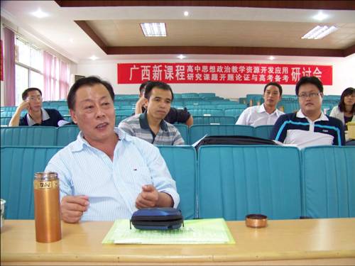 广西师范大学教授、“21世纪园丁工程”自治区级骨干教师培训导师宋立军,以及来自全区各地中学的“21世纪园丁工程”骨干教师优秀学员、昭平中学的领导、昭中、昭平五中、昭平四中的政治教师、昭平中学各级课题组组长近50人参加了此次研讨会。研讨会就课题《基于新课标下的广西高中思想政治教学资源的开发应用研究》作开题报告,到会的导师、学员就深入开展课题论证、研究及政治高考备考等方面作了专题报告、发言和讨论。