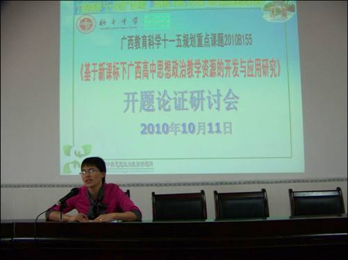 2010年10月11日,《基于新课标下广西高中思想政治教学资源的开发与应用研究》课题开题论证在昭平中学举行。