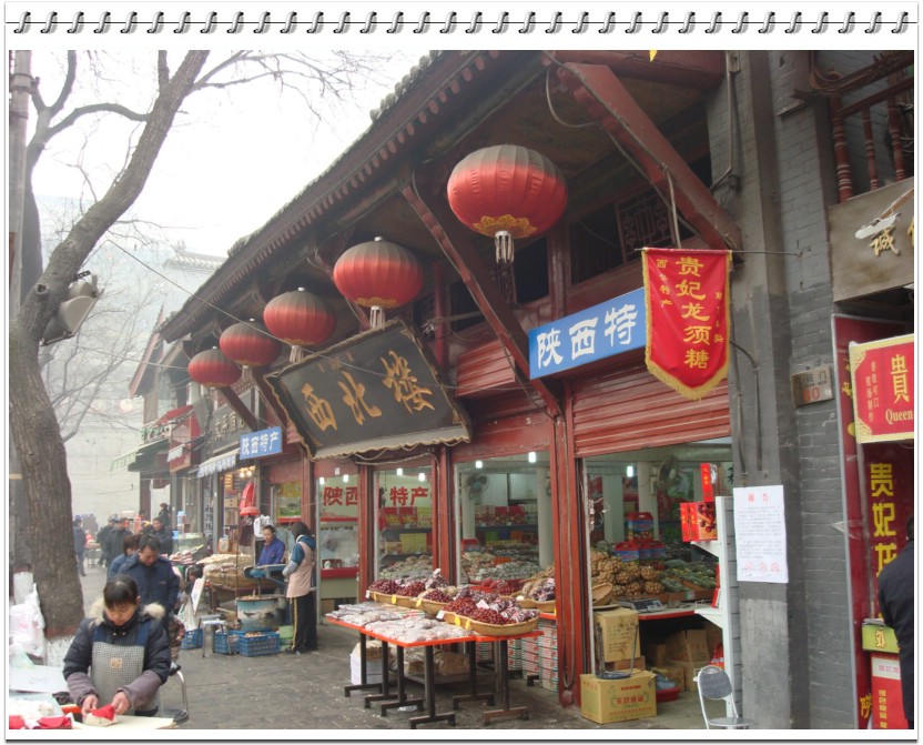 从西安市中心向西100多米、穿过鼓楼门洞,就进入了西安回民历史街区。区内有大小形态各异、年代不一的10座清真寺,约两万名回民“依寺而居”,维持着原有的宗教传统和生活习惯。西安著名的北院门“小吃一条街”、中国现存年代最早的化觉巷清真大寺,以及中国的三大城隍庙之一西安城隍庙都在区内,以回族和汉族为主的多个民族在此居住生活,呈现出多元化的文化氛围,具有独特的历史与文化价值。回民街指的是北院门,化觉巷,西羊市,大皮院四条街道,而其中最重要的就是北院门这条街了。到了西安的中外游客一般都不会错过回民街,不光是因为街道两旁大量的美食店铺,更是因为这条街道深厚的文化内涵。西安北院门是回民聚集区的一条重要街道,长度大约500米左右,南北走向,特点是青石铺路、绿树成荫,路两旁一色仿明清建筑,或餐饮、或器物,均为回民经营,具有浓郁清真特色,深受外来游客特别是国外游客的喜爱。回民街在西安,绝对是一个标志性的地点。纵横四条街道,基本上提供了西安多部分回族的美食,如:牛羊肉泡馍、灌汤包、清真水饺、酸菜炒米、烤牛羊肉、各类点心及精美小吃让人目不暇接、流连忘返。来西安旅游的朋友绝不会错过这样一条街道,既大大满足了自己的食欲又增添了许多旅游的乐趣。